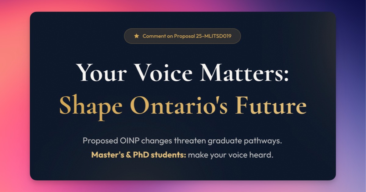 Proposed OINP changes threaten graduate pathways. Master's & PhD students: make your voice heard.